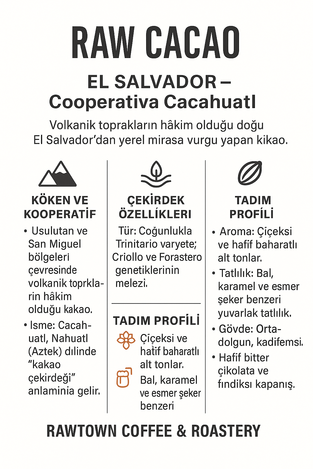 İsim: Cacahuatl, Nahuatl (Aztek) dilinde “kakao çekirdeği” anlamına gelir. Kooperatif, yerel kültürel mirasa vurgu yapmak için bu ismi seçmiştir.